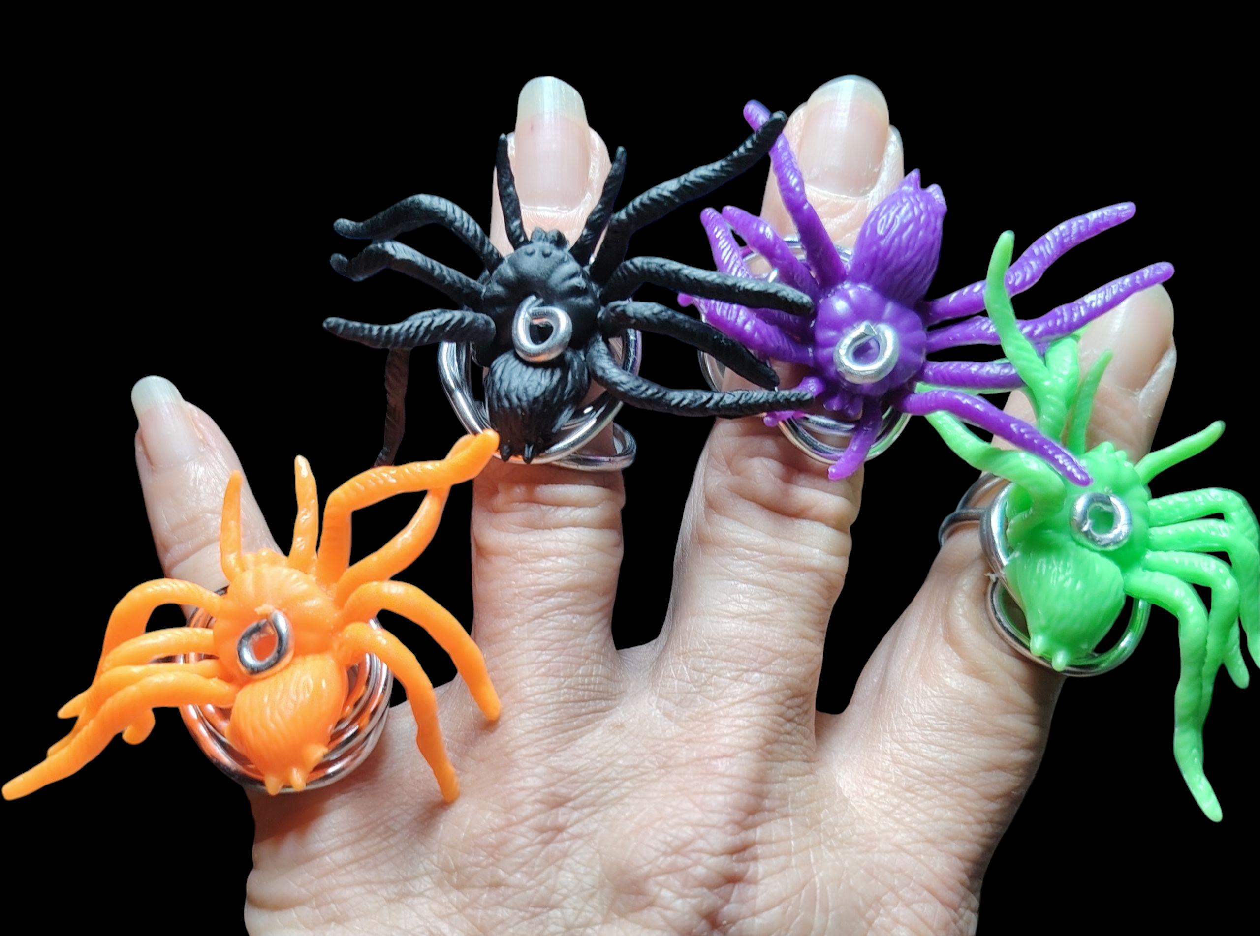 Chaque bague combine une structure en aluminium argenté de 2 mm avec une araignée en plastique souple colorée, pour un effet à la fois amusant et un peu effrayant — parfait pour Halloween, les soirées à thème, ou simplement pour afficher un style original et décalé.