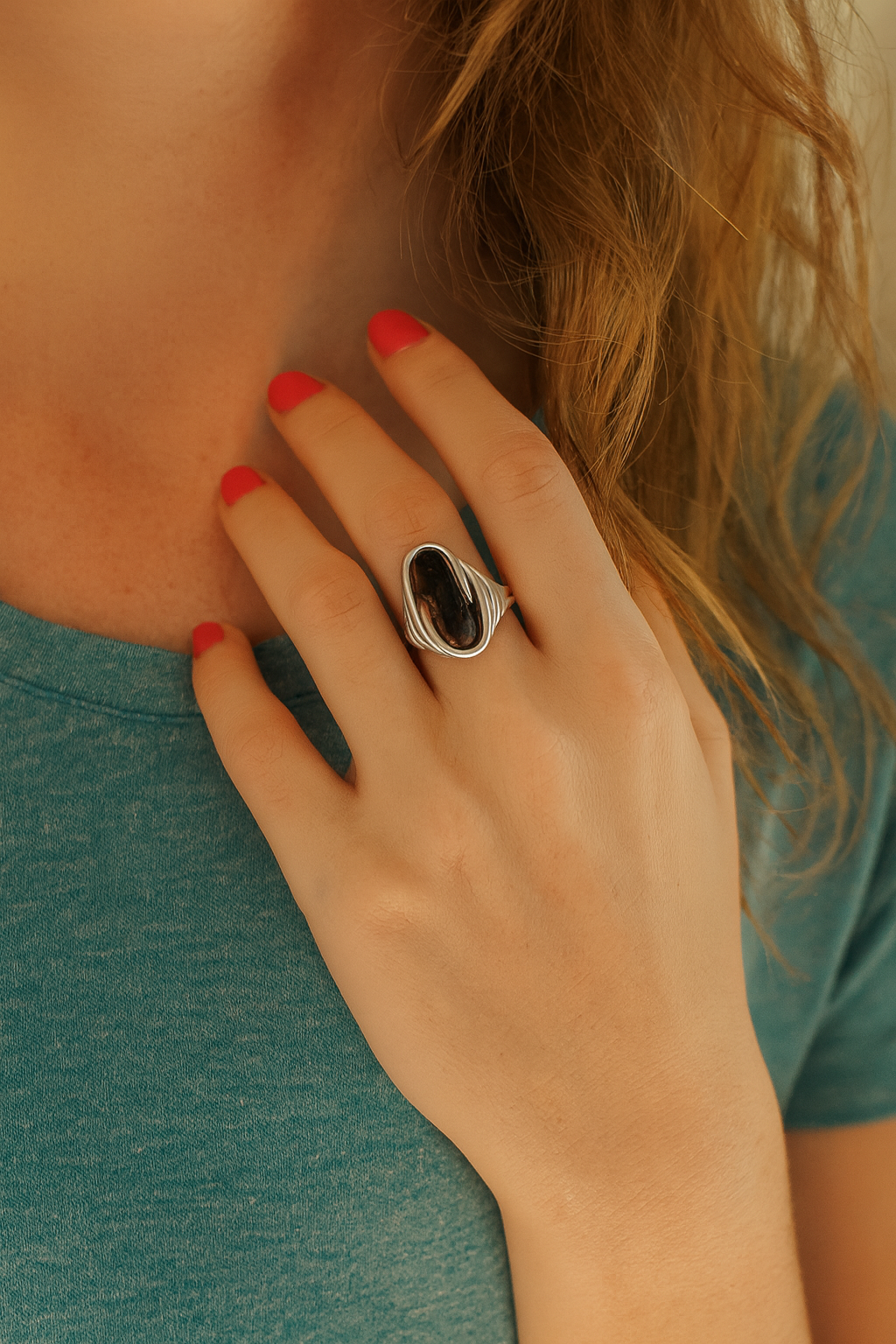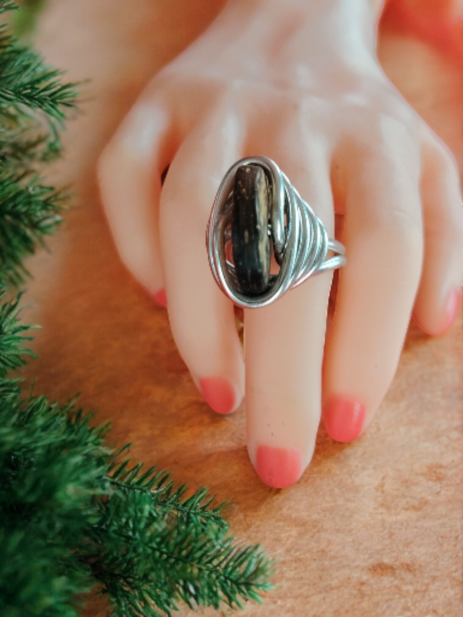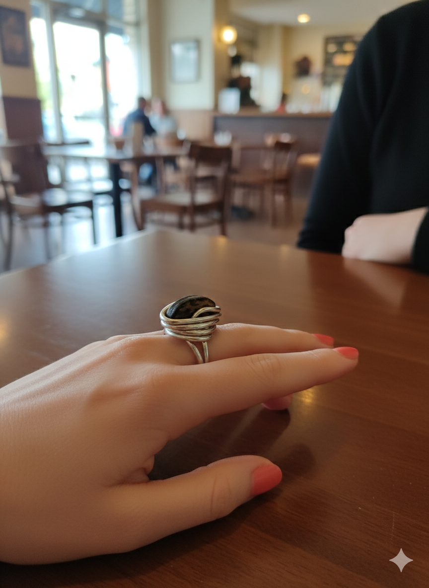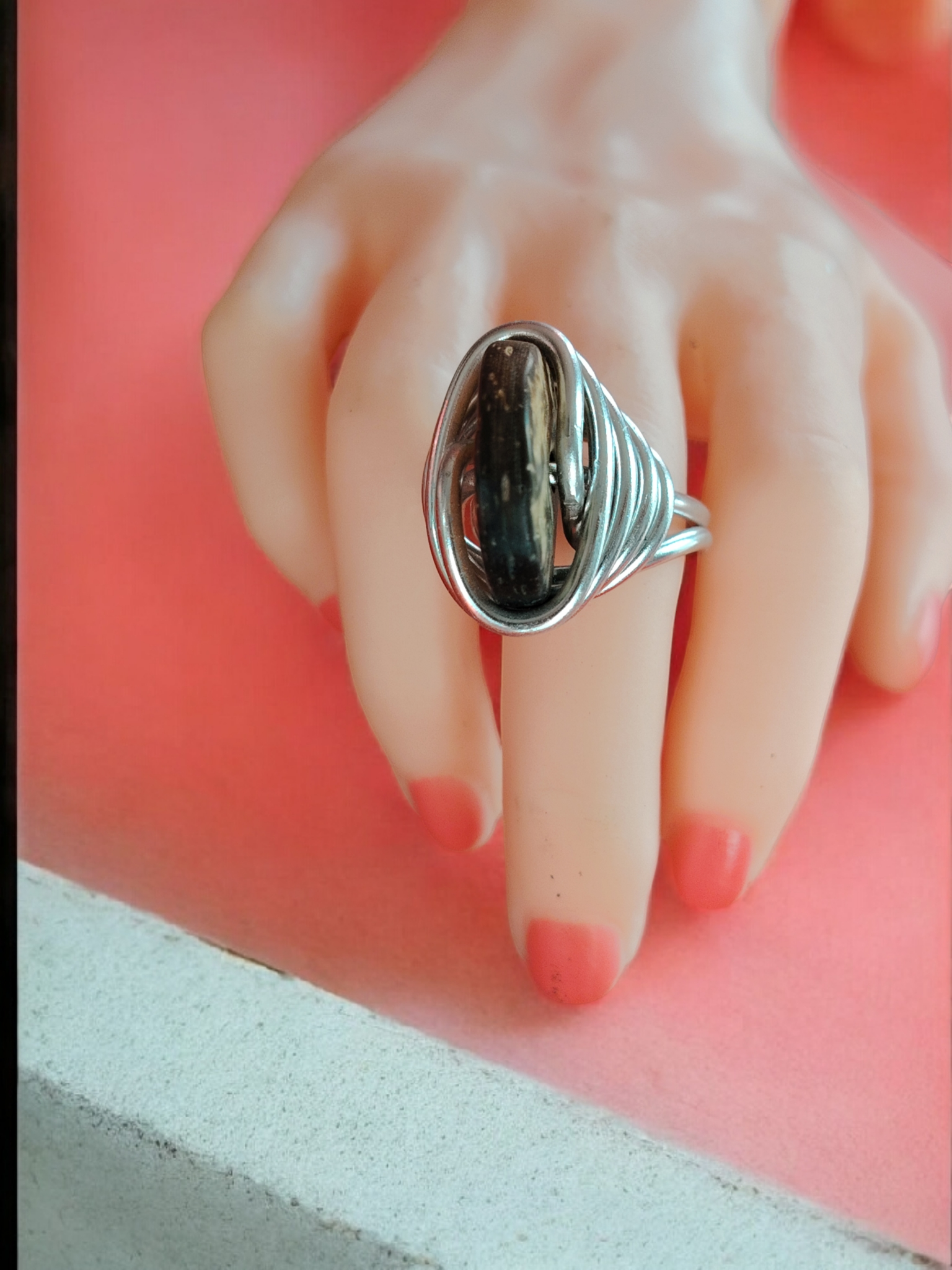 Laissez-vous séduire par l’authenticité naturelle de la bague “Coco Élégance Argentée”, une création artisanale qui marie avec finesse modernité et matières brutes.
