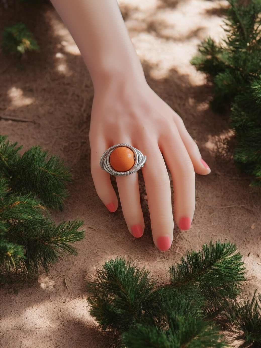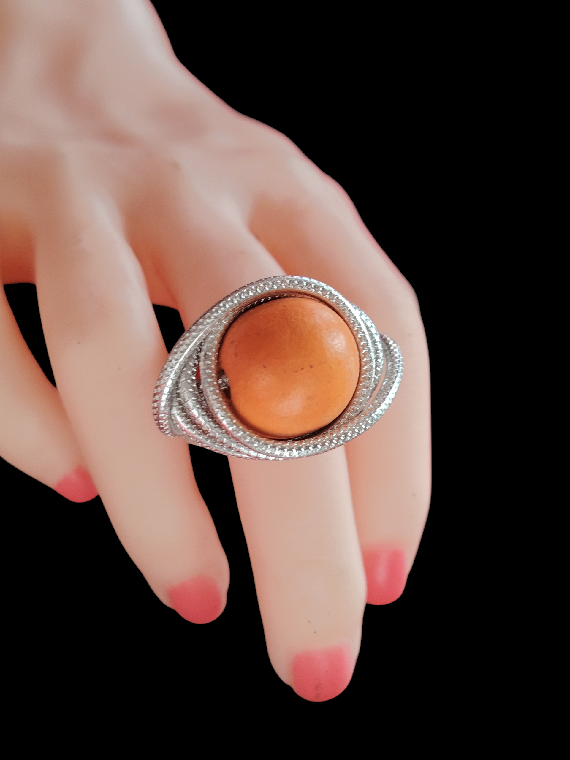 Sa texture délicatement martelée capte la lumière tout en mettant en valeur les irrégularités subtiles du travail artisanal, rendant chaque bague unique. L’association du métal argenté et du bois crée un contraste élégant et naturel, parfait pour celles qui aiment les bijoux à la fois sobres, originaux et intemporels.