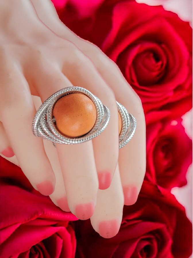 La bague Écorce d’Argent est une création artisanale qui allie la modernité du fil d’aluminium argenté à la chaleur naturelle du bois. Façonnée à la main en fil d’aluminium texturé de 2 mm, elle dessine un enroulement harmonieux et organique autour d’une perle en bois, pièce centrale qui apporte douceur et authenticité.