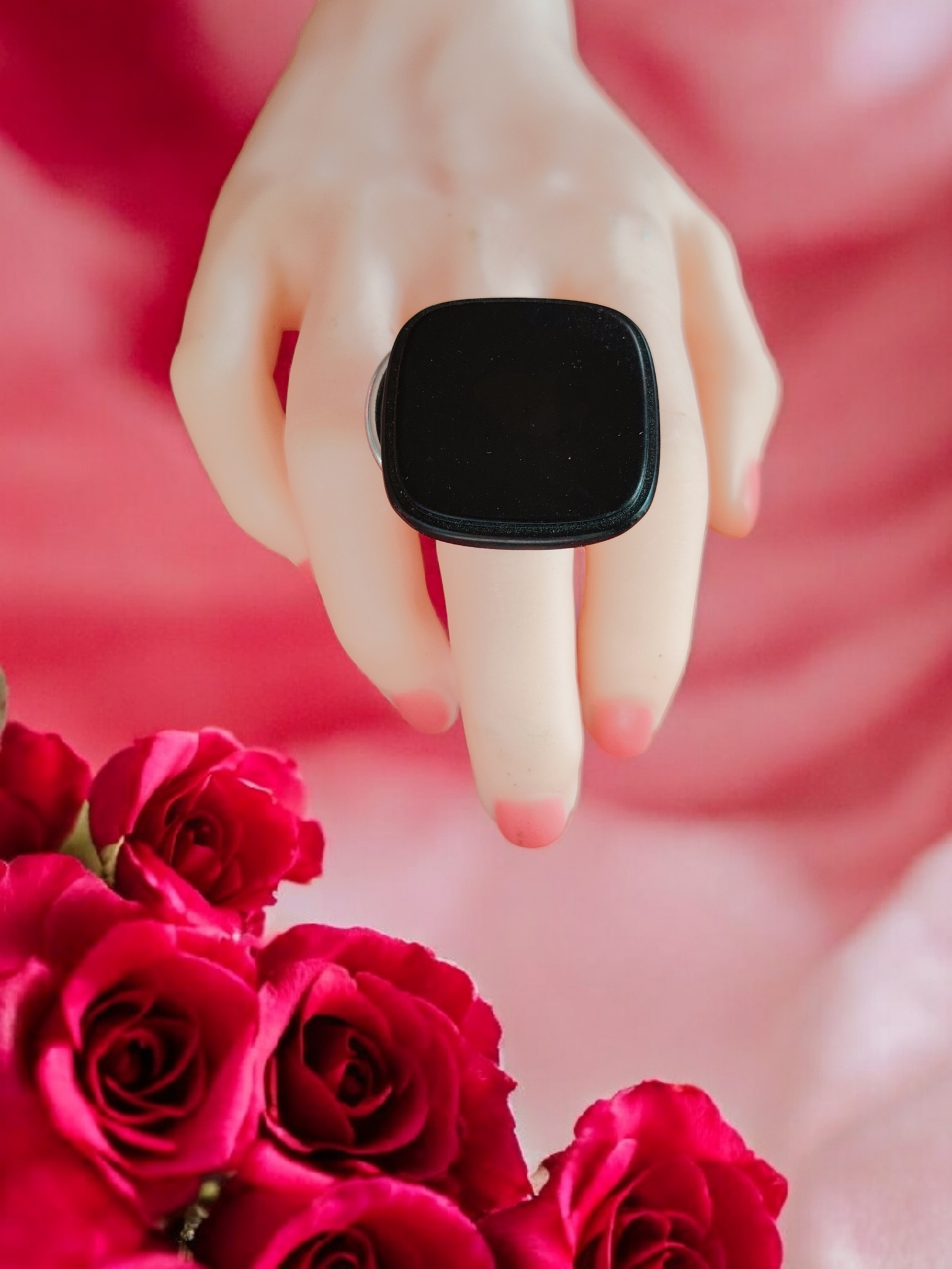 Léger, résistant et hypoallergénique, l’aluminium argenté épouse délicatement le doigt tout en assurant une excellente durabilité. Le bouton central, au fini sobre et élégant, apporte une touche unique qui fait de cette bague un bijou à la fois tendance, original et facile à porter au quotidien.