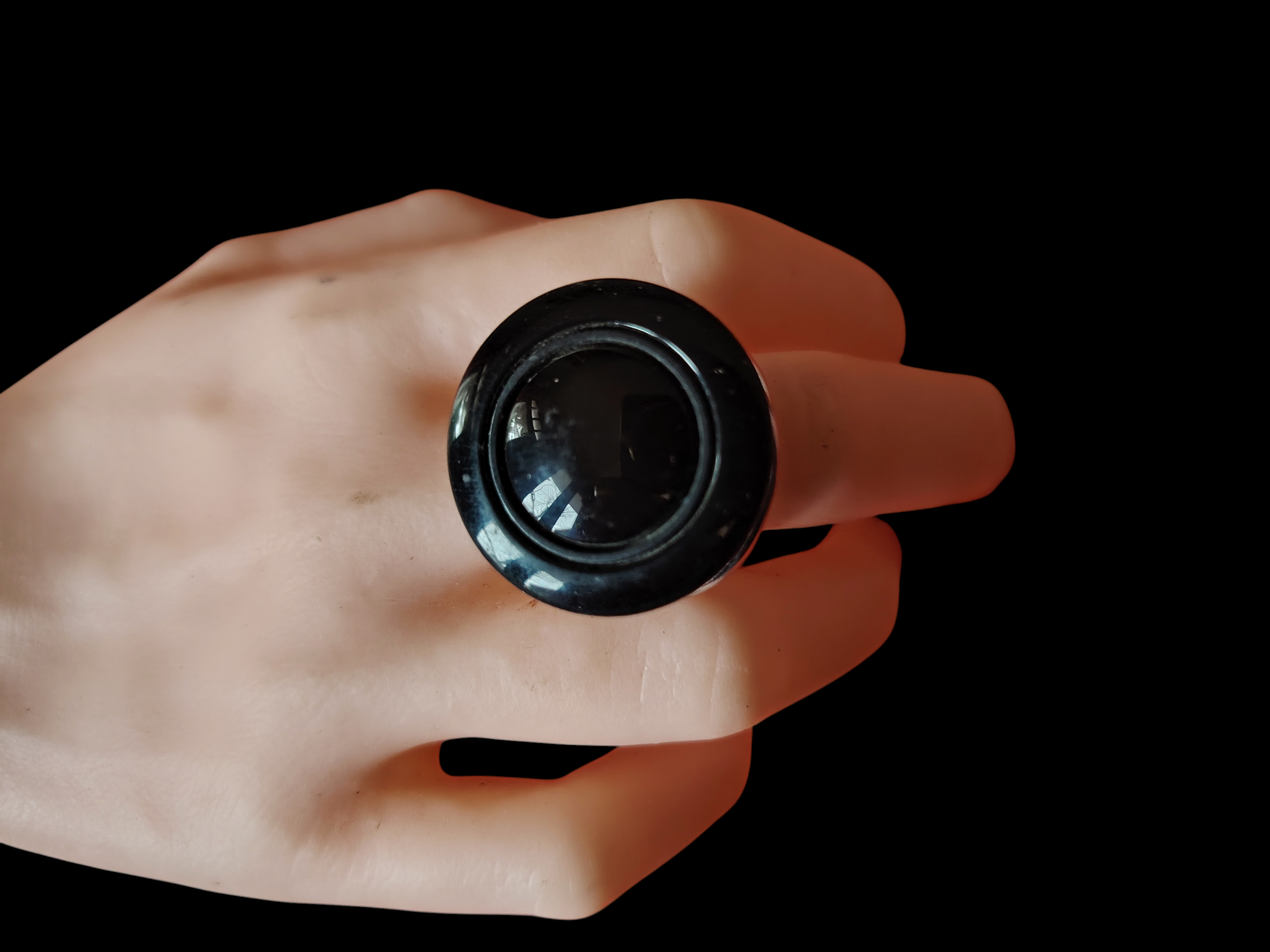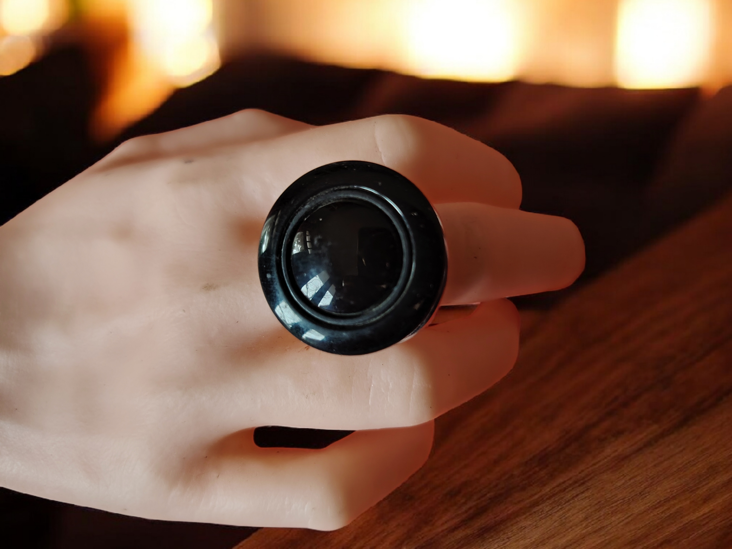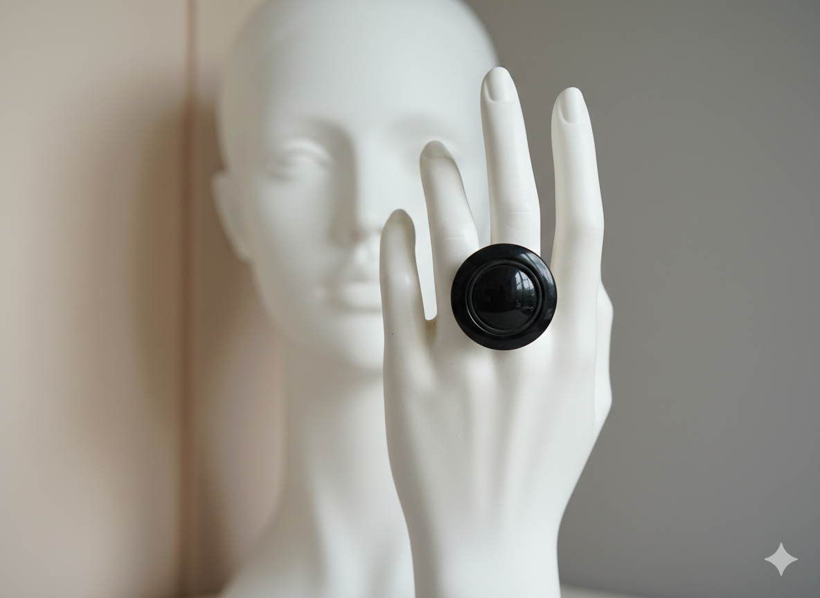 Bague bouton noire au design moderne et élégant. Une pièce audacieuse qui sublime la main avec style et caractère.