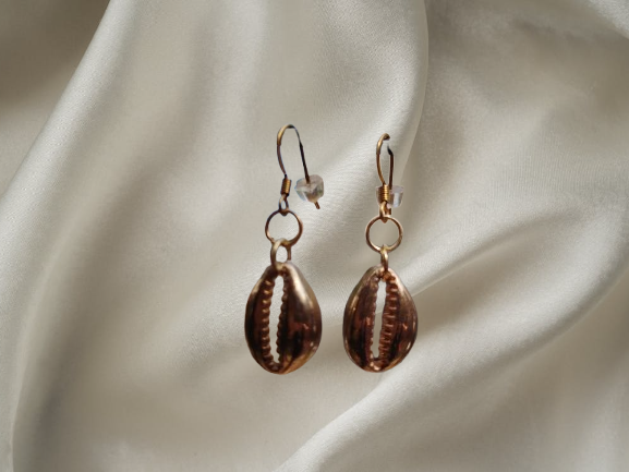 Chaque boucle arbore un cauri doré en CCB , au fini lisse et éclatant, évoquant l’éclat du soleil sur la mer. La forme naturelle du coquillage est sublimée par une teinte chaude et dorée, parfaite pour illuminer votre visage en toutes saisons.