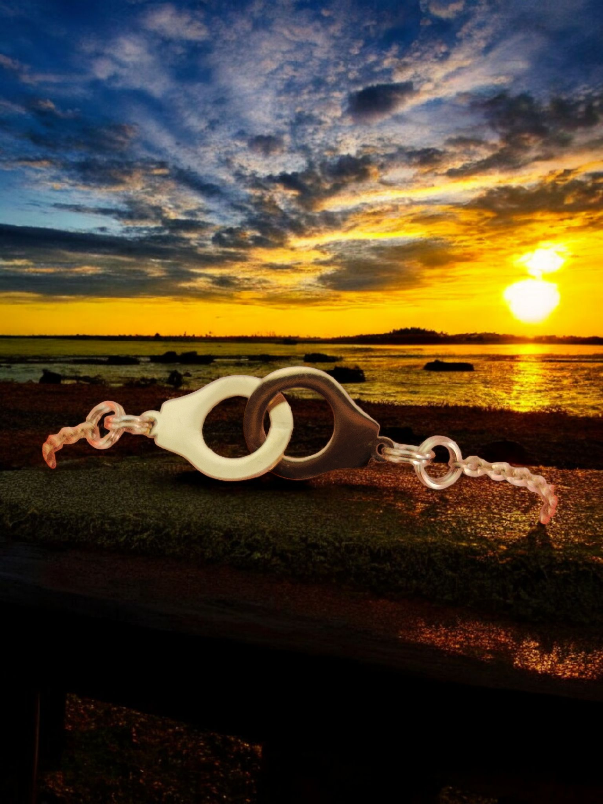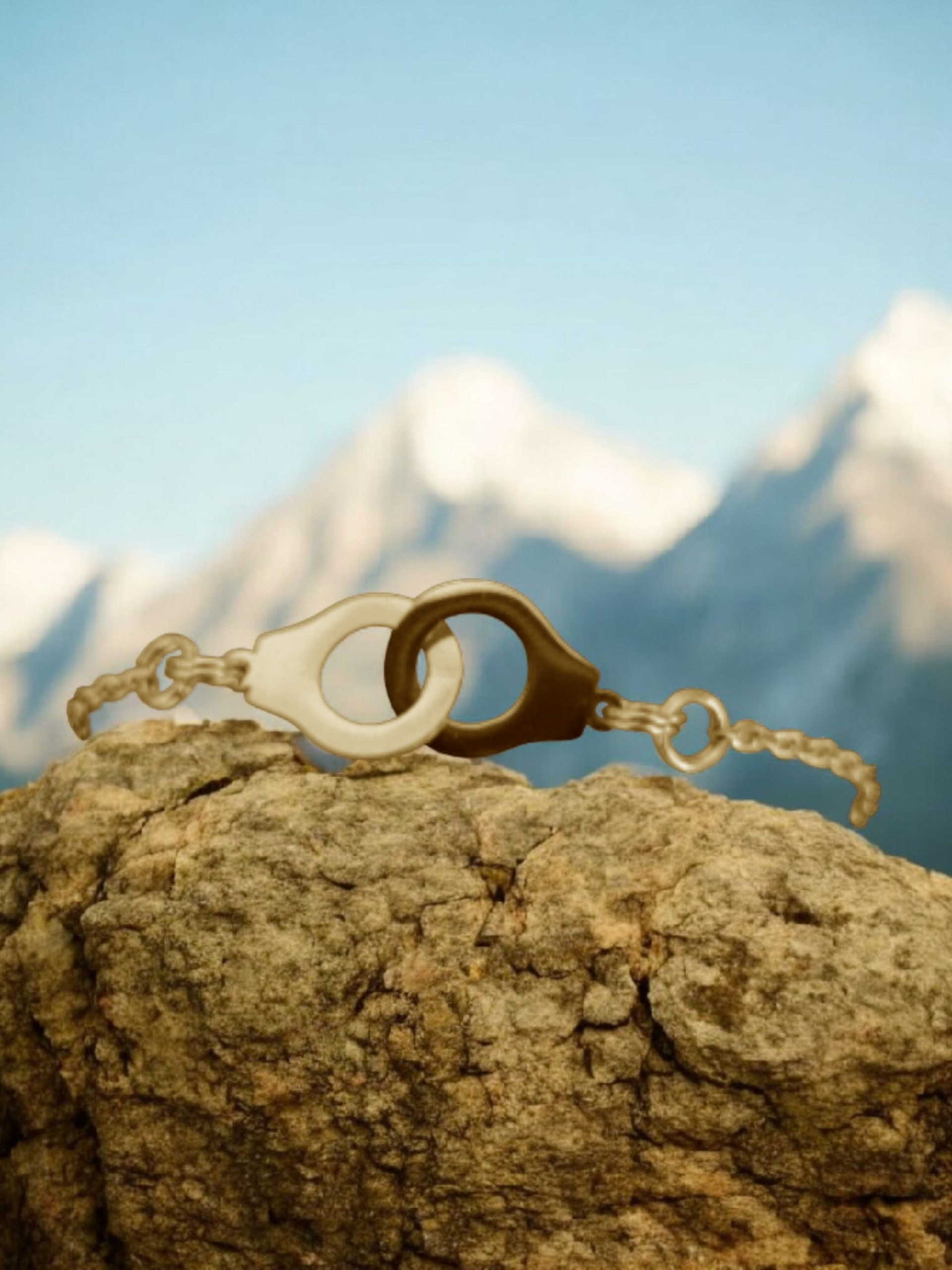 Motif central : Menottes entrelacées symbolisant le lien et l’attachement