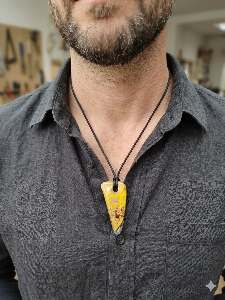 Apportez une touche d’originalité et de nature sauvage à votre style avec notre collier « Éclat de Savane ». Ce bijou unique est composé d’un pendentif en verre fait main, aux nuances chaudes de jaune, d’ocre et de brun, rappelant les terres dorées et les textures vibrantes de la savane. Chaque pendentif est soigneusement façonné, offrant un mélange harmonieux de couleurs et de motifs naturels, ce qui rend chaque pièce véritablement unique.