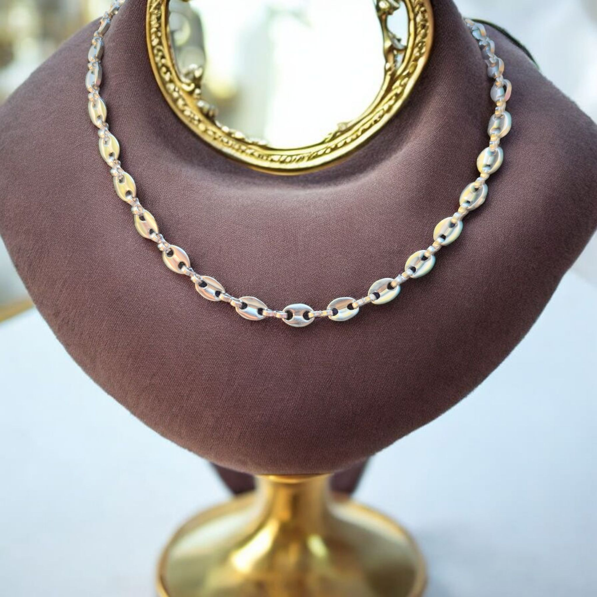 Collier Le Grain d’Argent – Chaîne Graine de Café en Acier Inoxydable