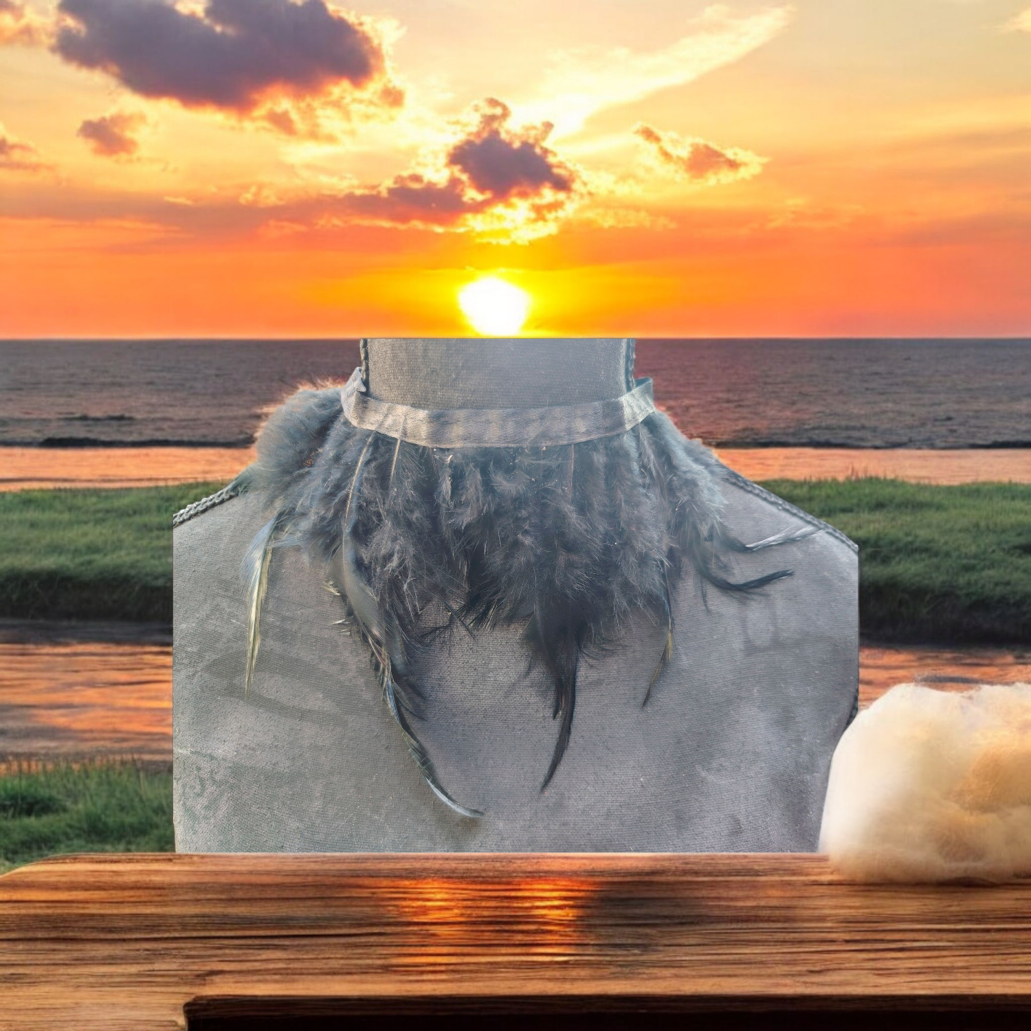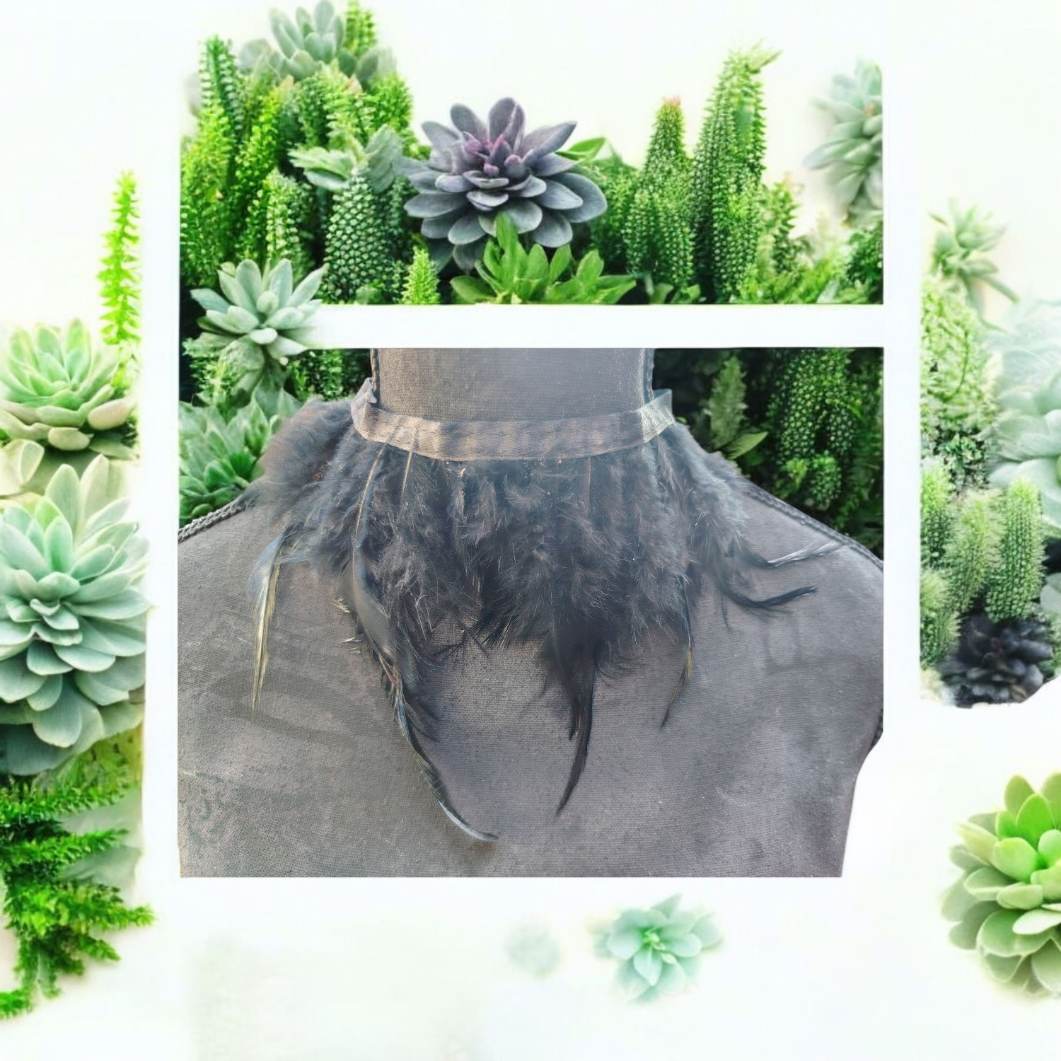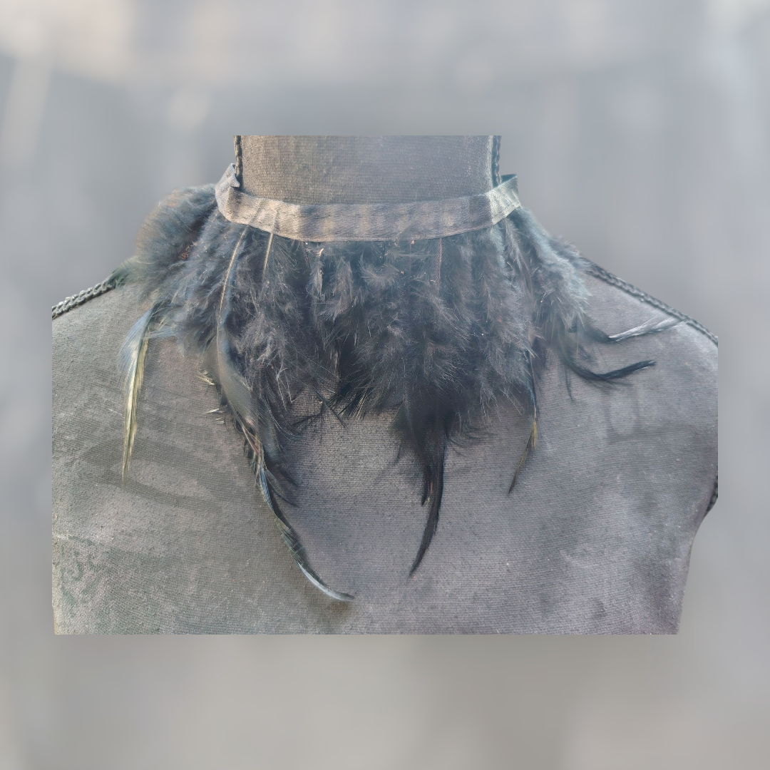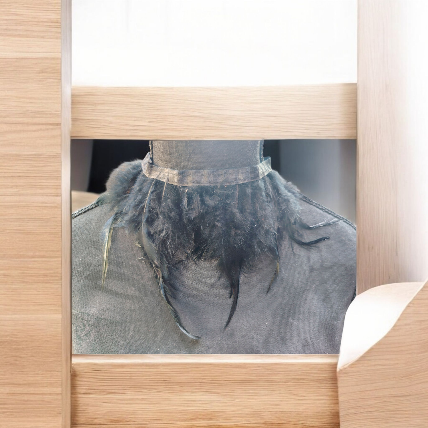 Ce collier choker est confectionné avec des plumes noires somptueuses, créant un effet de col spectaculaire et mystérieux. Parfait pour ajouter une touche de glamour gothique ou une finition théâtrale à toute tenue.