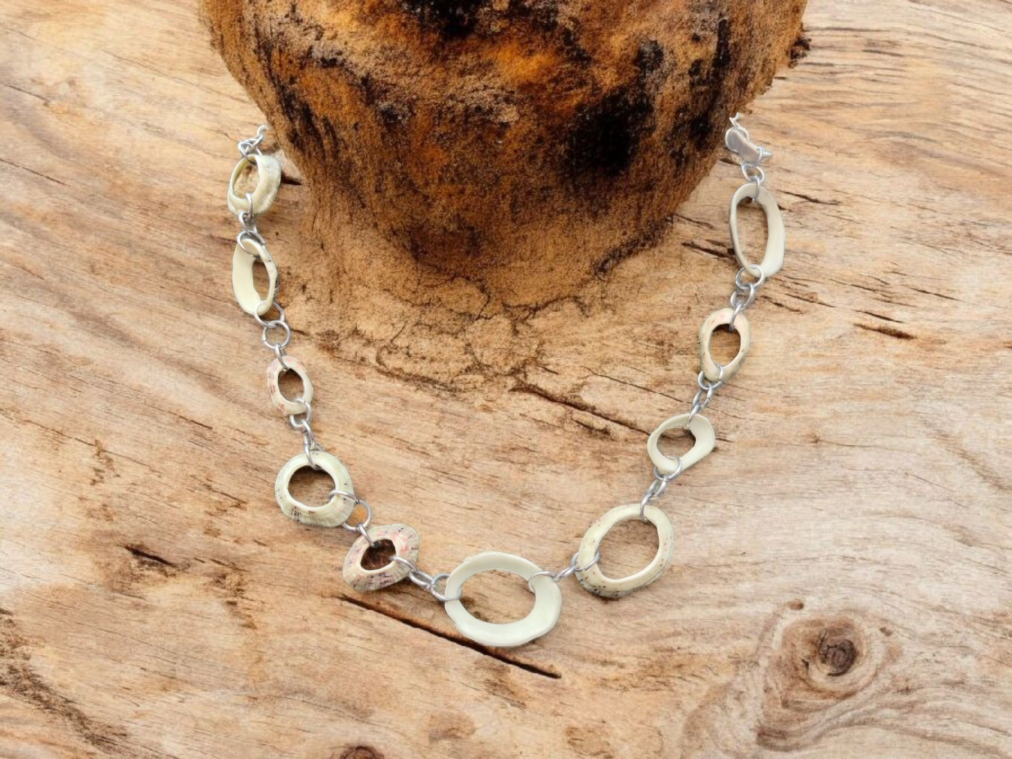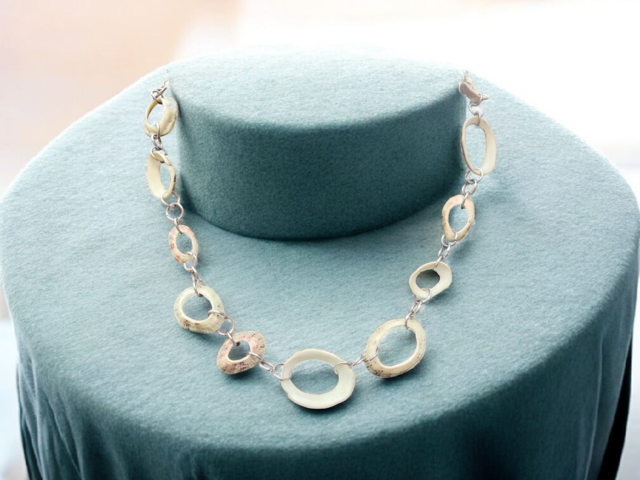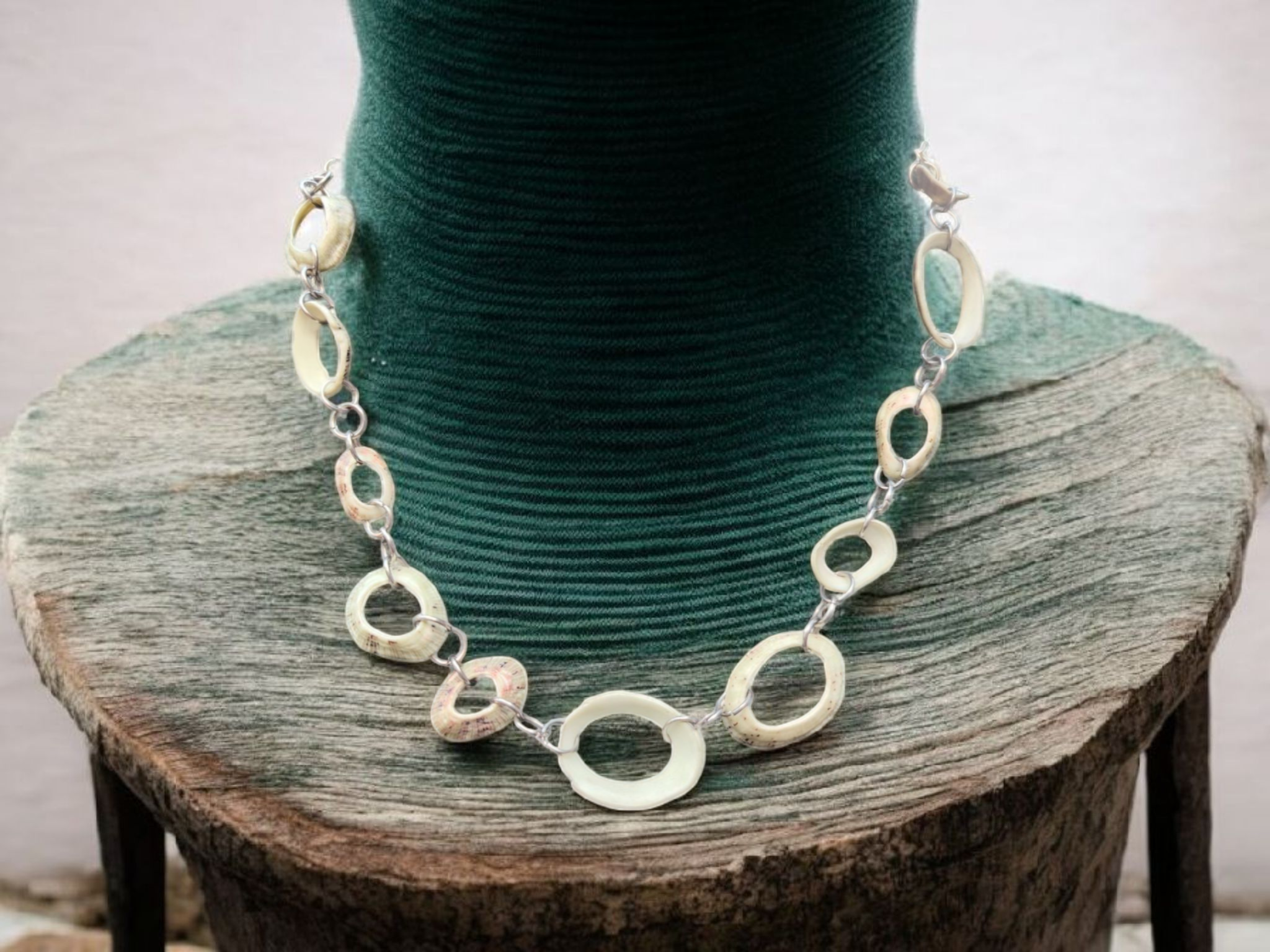 Fabriqué à la main à partir de coquillages naturels soigneusement polis, ce collier de 55 cm allie élégance organique et charme authentique.