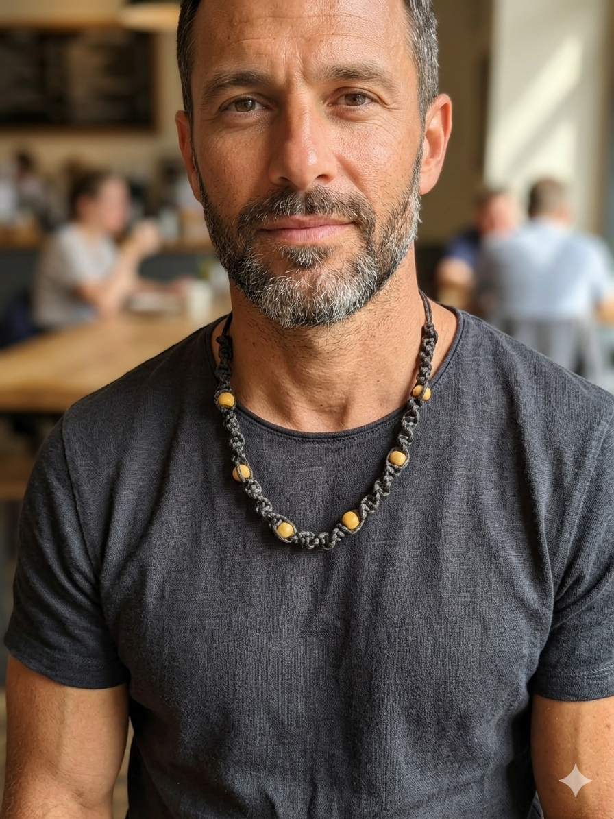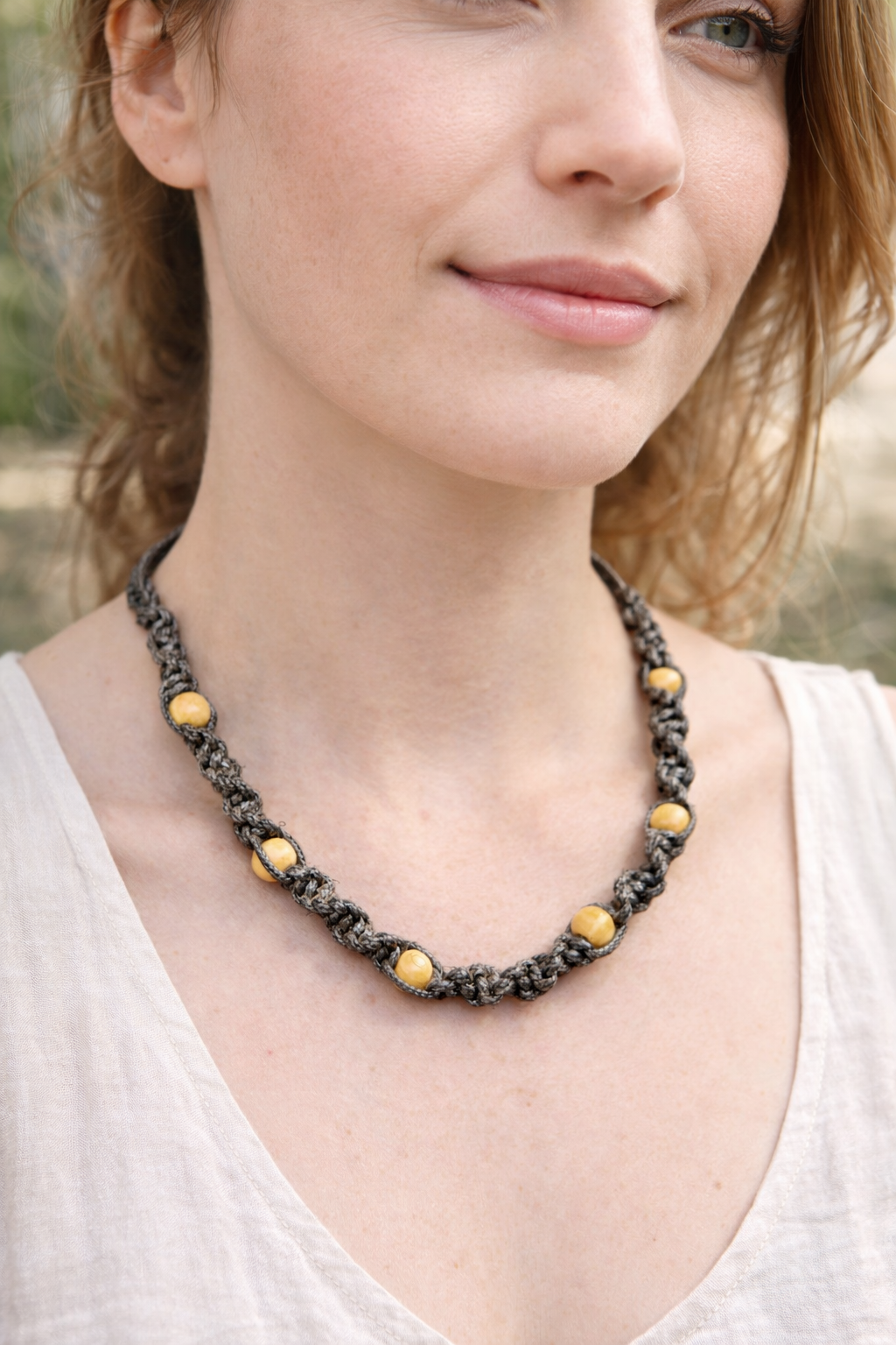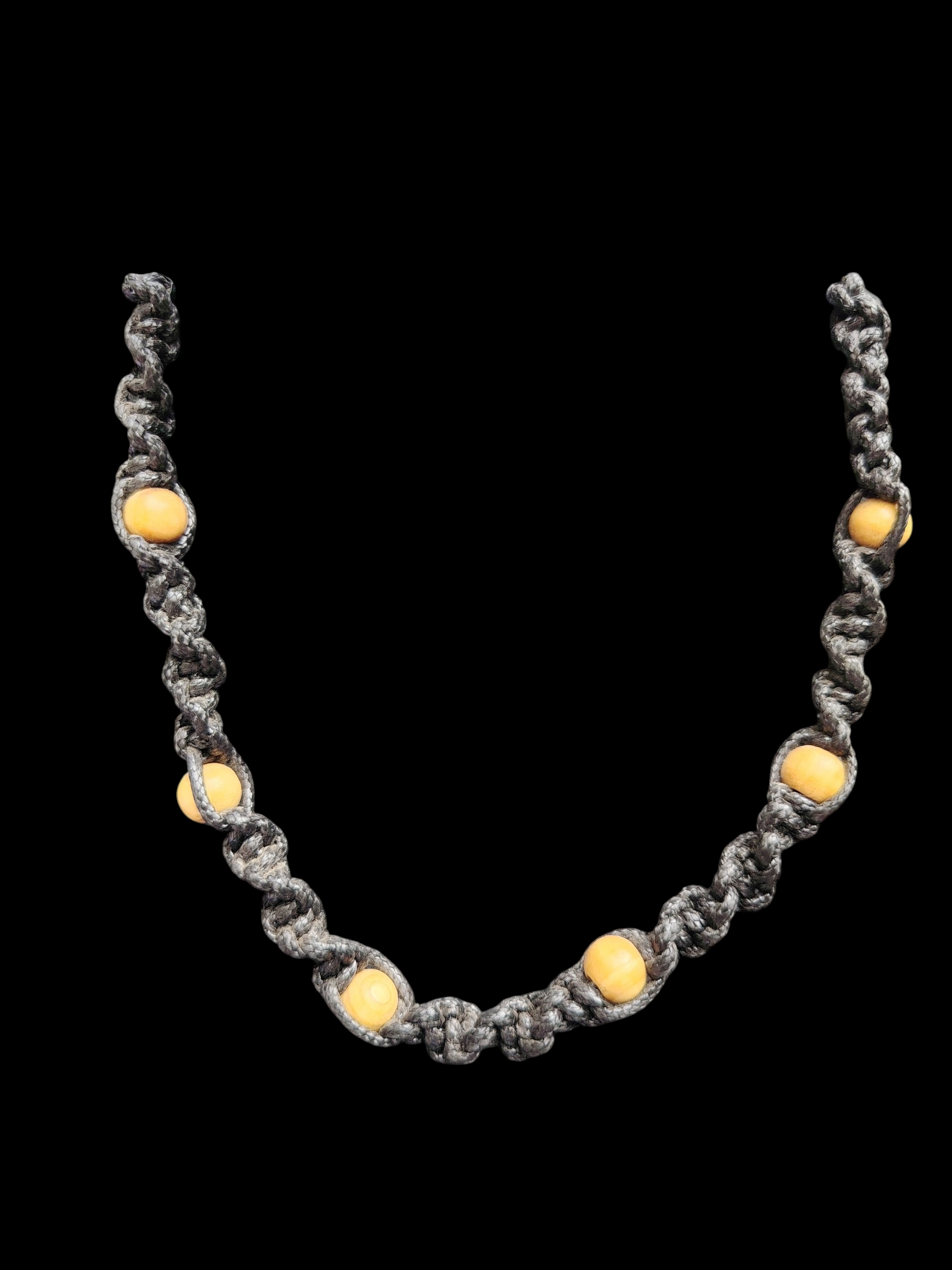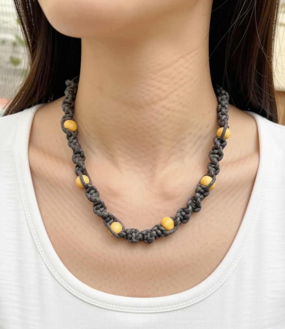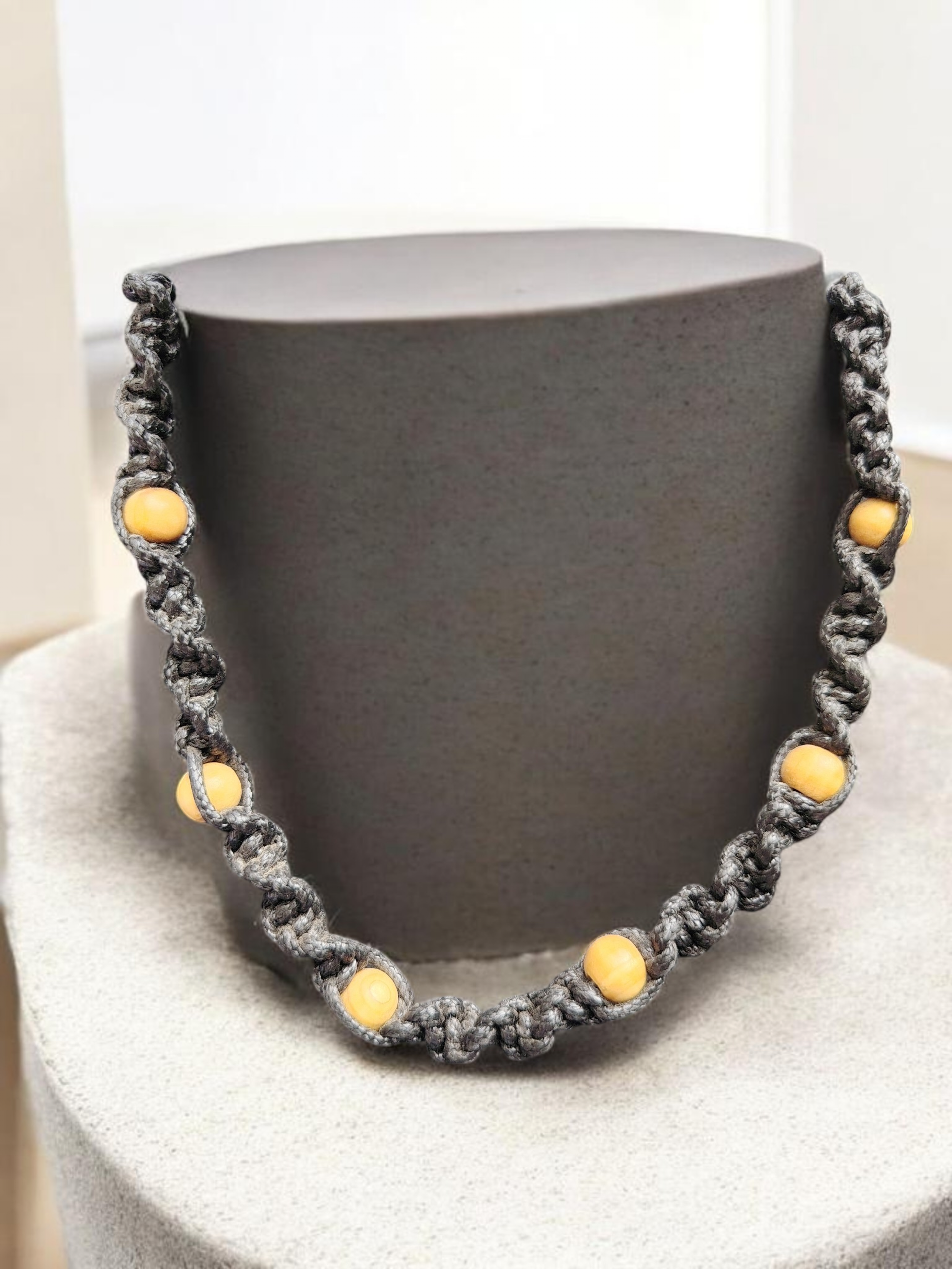Apportez une touche d’authenticité et de caractère à votre style avec ce superbe collier en micro macramé entièrement réalisé à la main. Confectionné avec soin à partir de fil résistant noir, ce bijou tressé arbore de jolies perles en bois de 10 mm, aux nuances chaleureuses et naturelles.